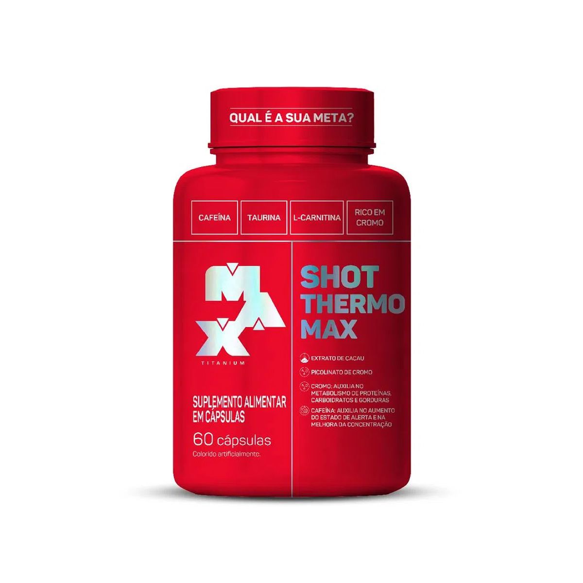 SHOT THERMO MAX reúne 5 ingredientes potentes para auxiliar o seu corpo a reagir aos estímulos de treino! Além de L-carnitina e taurina, possui também a cafeína, que auxilia no aumento do estado de alerta e na melhora da concentração, o cromo, que auxilia no metabolismo de proteínas, carboidratos e gorduras e o extrato de cacau, que é fonte de compostos fenólicos.